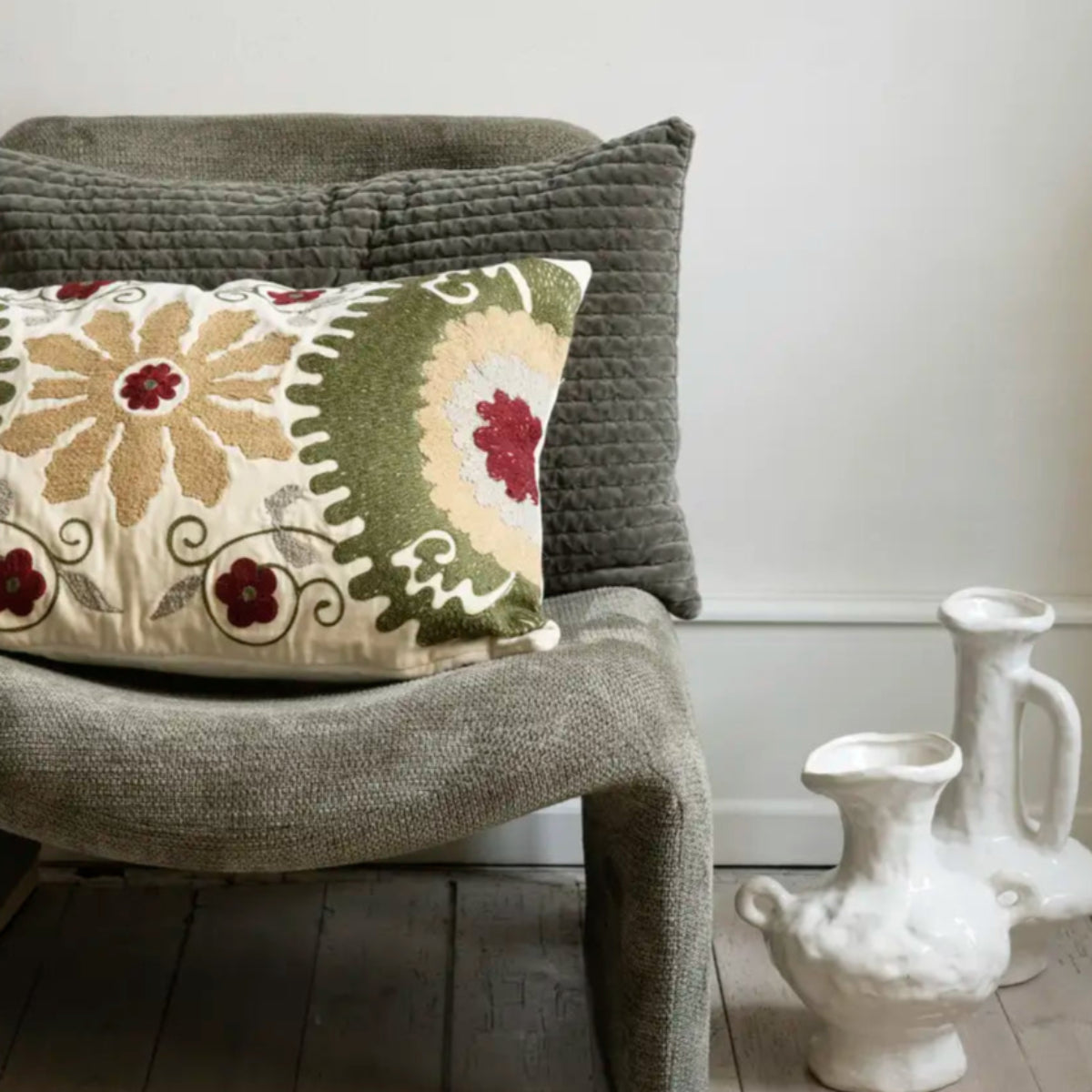 Product Details: 100% Cotton 60cm x 40cm with zip. Quilted velvet. Dusty green