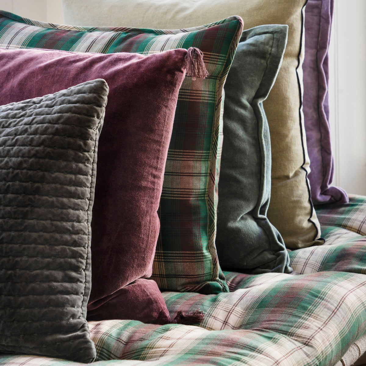 Gorgeous quilted velvet cushion cover from Madam Stoltz, with striped quilt stitch detail. Made of cotton velvet, this cover is perfect for adding some cosiness and texture to your home.